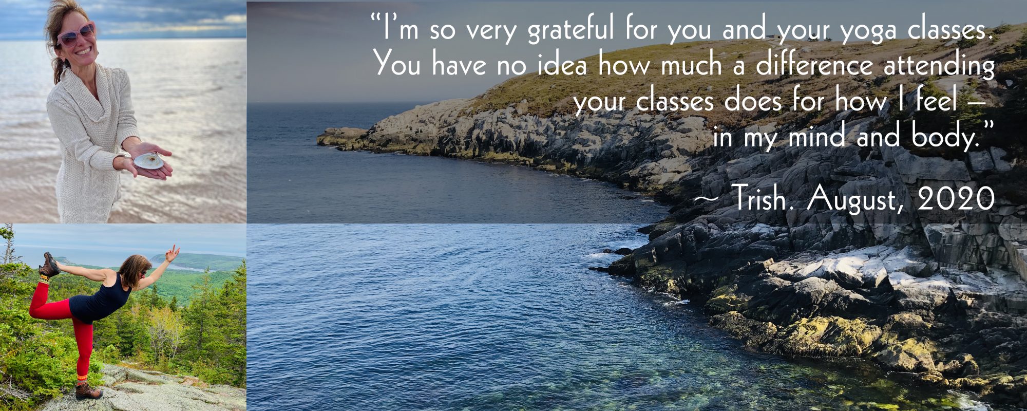 I look forward to sharing yoga with you -whether you are beginning your yoga journey, or looking to deepen your yoga practice. I offer online and in-person group practices in Fall River, Nova Scotia, that are uplifting and unique, and based in Hatha yoga teachings. I am a 500 hour certified yoga instructor as well as a health professional. Always a student, I have deepened my own practice with numerous trainings including Self-Awakening Yoga, Freedom Style Yoga, Yin Yoga, Pranassage, and Yoga as Medicine. I am passionate about Ayurveda and am an Ayurveda Yoga Specialist. I aspire to offer yoga that is relaxing and calming, as well as rejuvenating and inspiring, and to support you on your path to optimal health. See you on the mat!